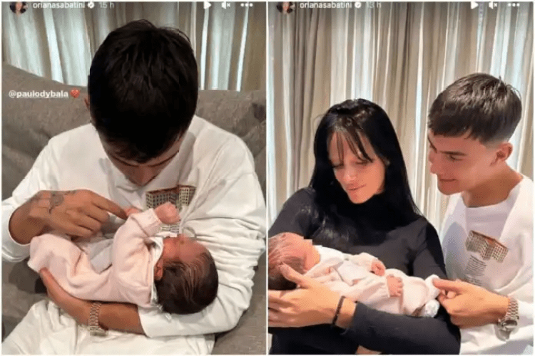 Bella Morata was greeted by parents Alvaro Morata and Alice Campello, with godparents Dybala and partner Oriana in attendance.