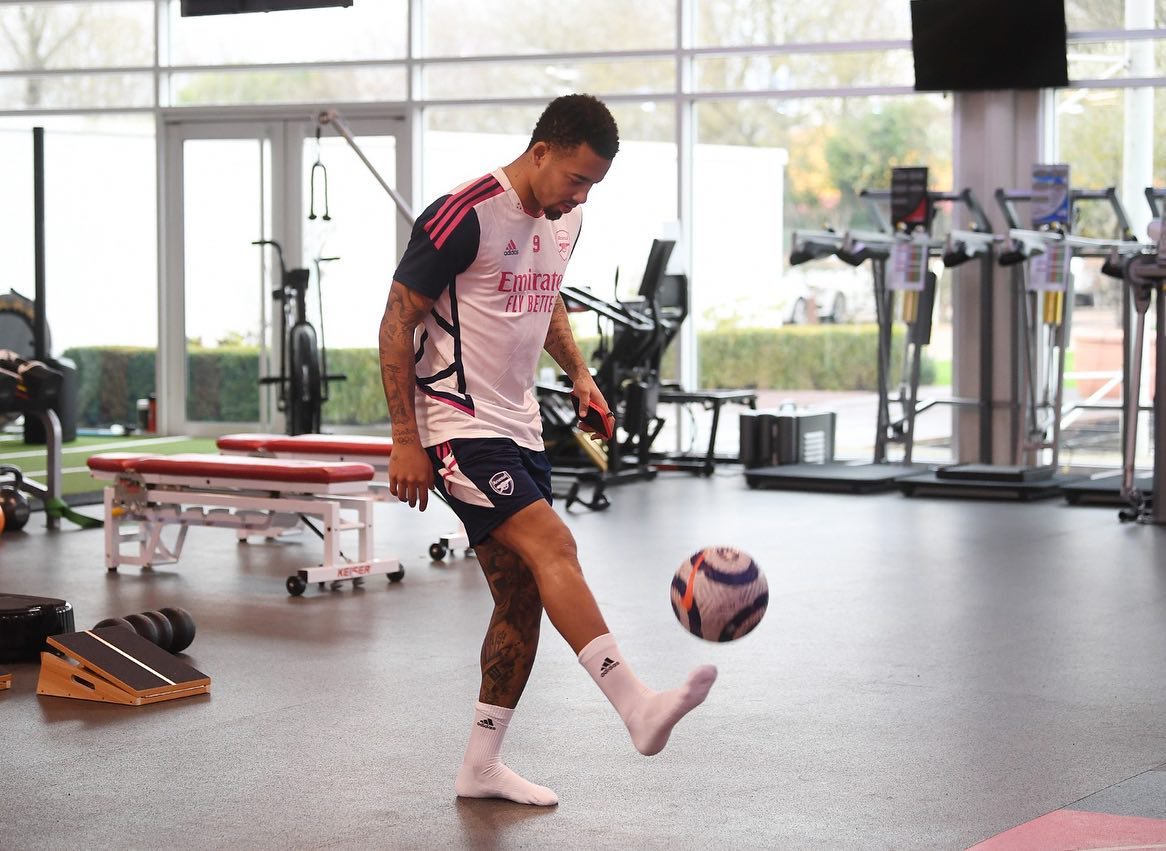 Gabriel Jesus, an Arsenal player, has been spotted kicking a ball once more and shown early signs of recovery.
