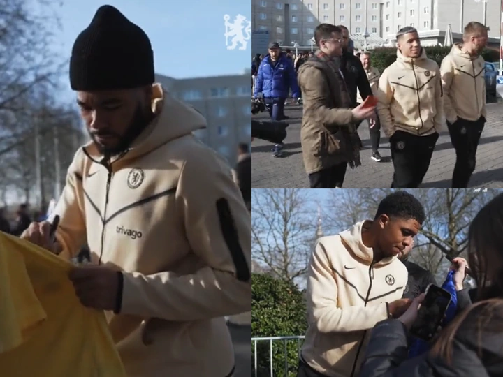 Enzo Fernandez, a midfielder who is likely to make his UEFA Champions League debut for Chelsea tonight, was seen taking a selfie with spectators as Reece James and injured defender Wesley Fofana signed autographs for onlookers.