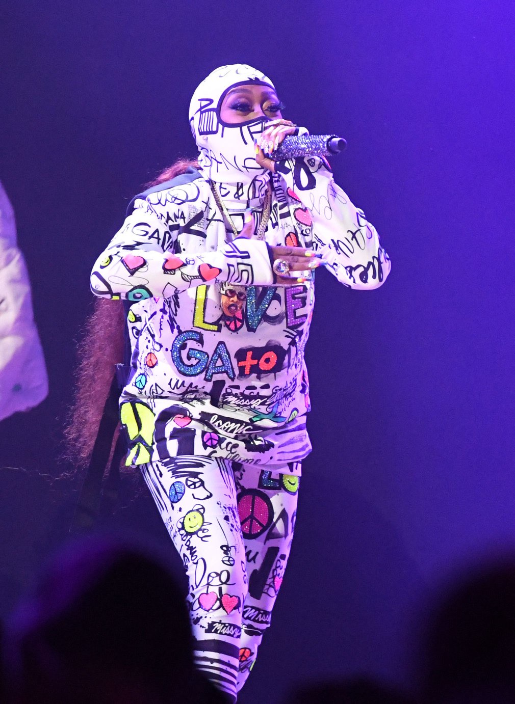 In addition to her matching balaclava and chunky gold chain, Missy finished off her ensemble as she performed a medley of her hits with a group of dancers.