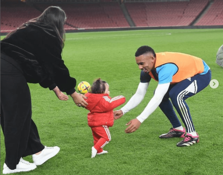 Gabriel Jesus of Arsenal posted lovely pictures of himself and his partner Raiane Lima having fun with their daughter Helena to his Instagram account.