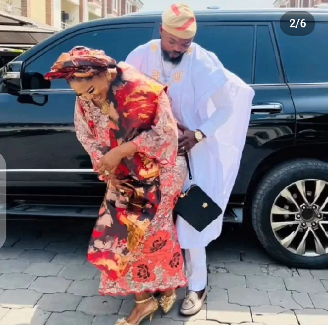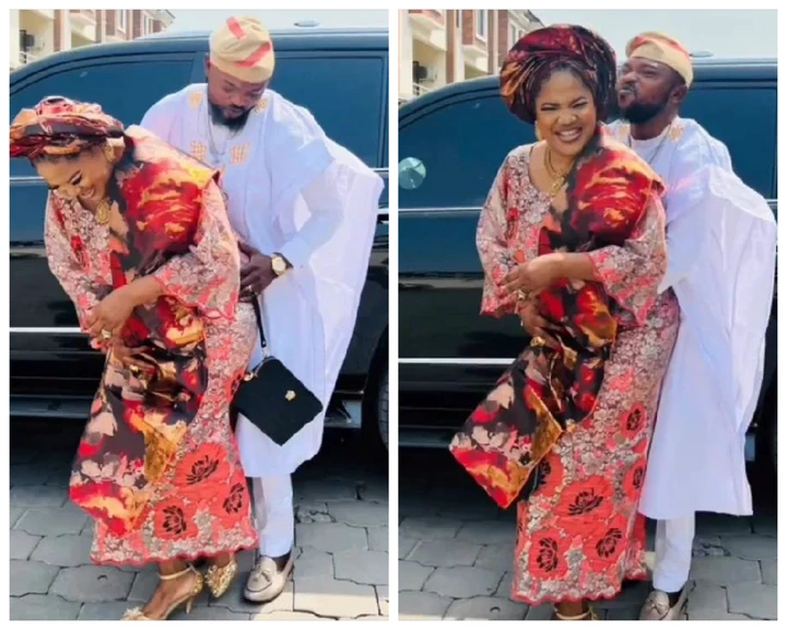Kolawole, Toyin Abraham's spouse, is cuter and more attractive as they pose for photos while wearing lovely matching local clothing.