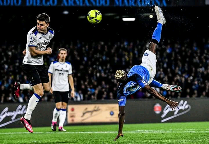 Victor Osimhen attempted a bicycle kick during Napoli 2-0 win over Atalanta in the Serie A encounter on Saturday.