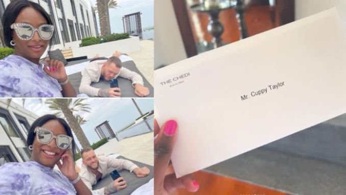 Yesterday, April 5, 2023, DJ Cuppy posted a sweet photo of her and her fiancé Ryan Taylor having fun in Muscat, Oman, on his verified Instagram profile.