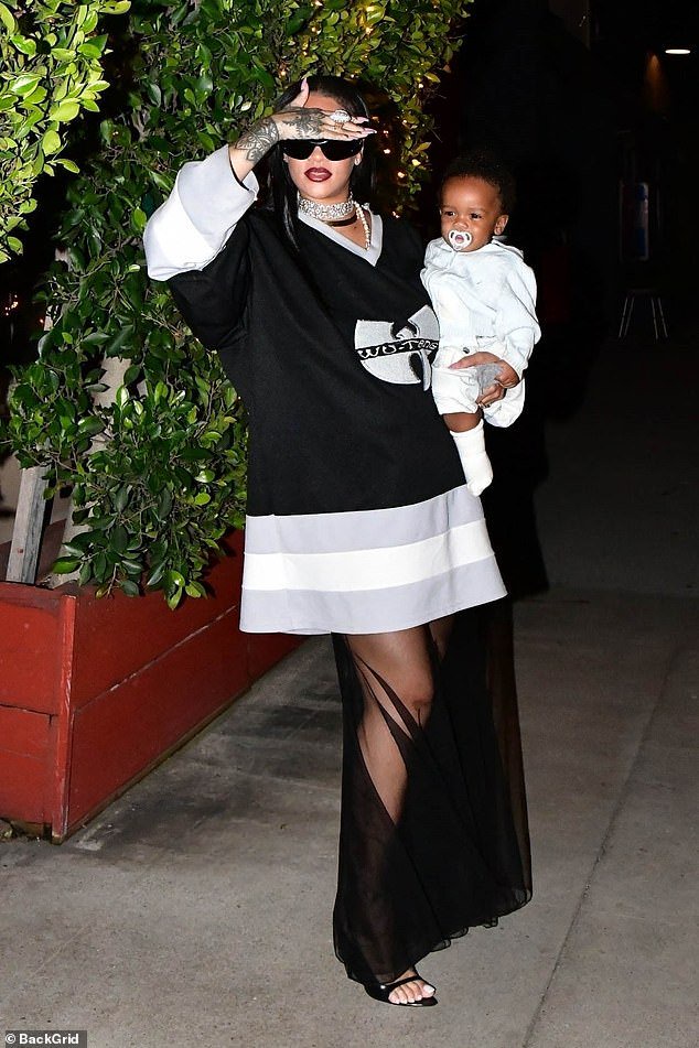 The 35-year-old singer is expecting a kid with her husband A$AP. Rocky, 34, looked every bit the stylish mother as she held her giggling kid in her arms, who was 10 months old.