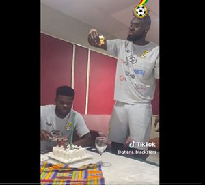 The Arsenal player was seen in a video singing and helping his closest friends Lawrence Ati-Zigi and Kasim Nuhu cut the cake to celebrate another significant moment in their friendship.