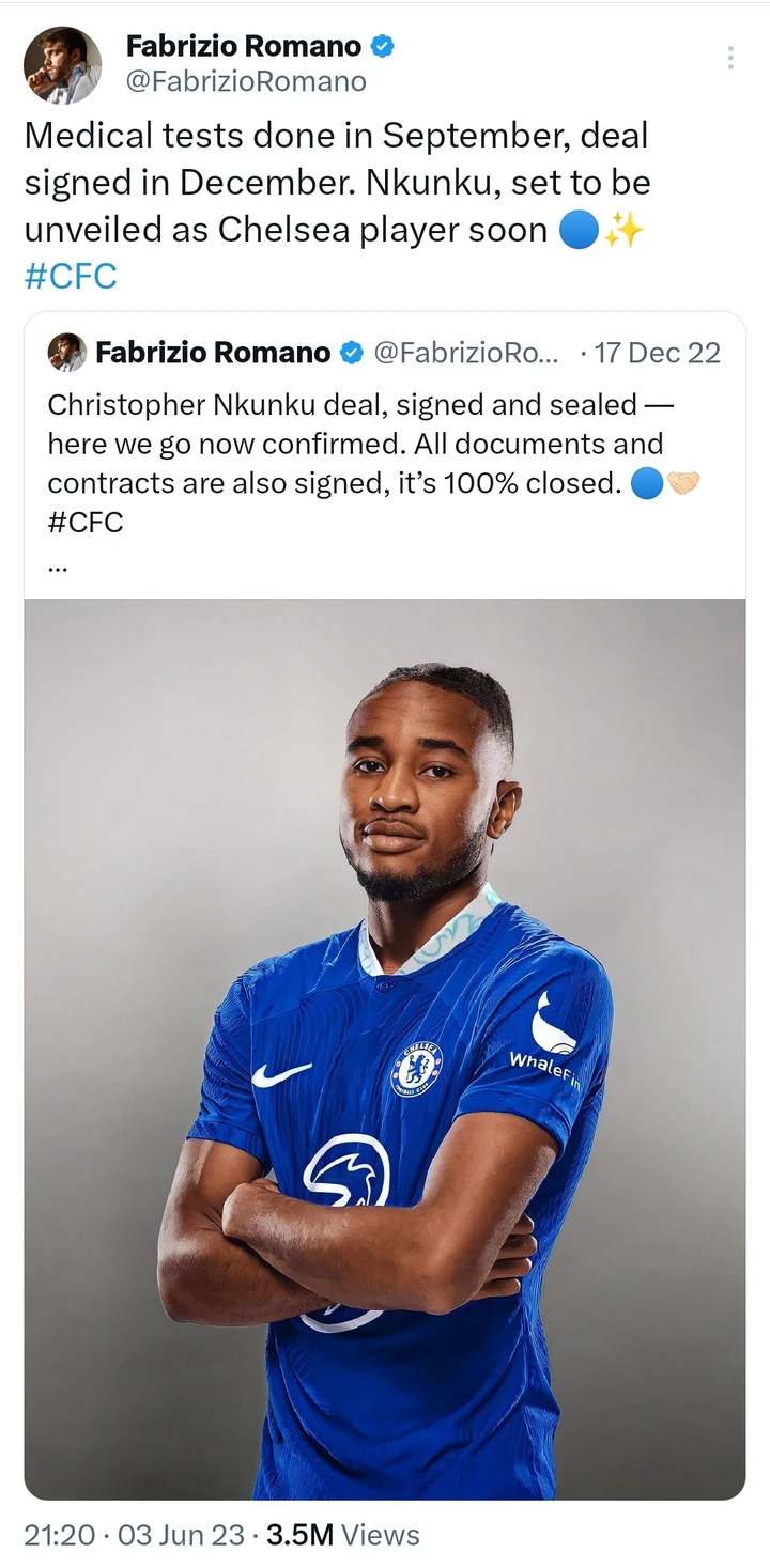Fabrizio Romano claims that the medical examinations began in September and the contract was signed in December.