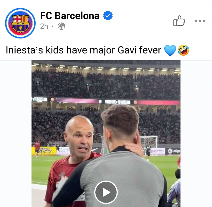 In a brief video posted by Barcelona on Facebook, Andres Iniesta said: "You have to give me your jersey" in reference to the Barcelona youngster Gavi.